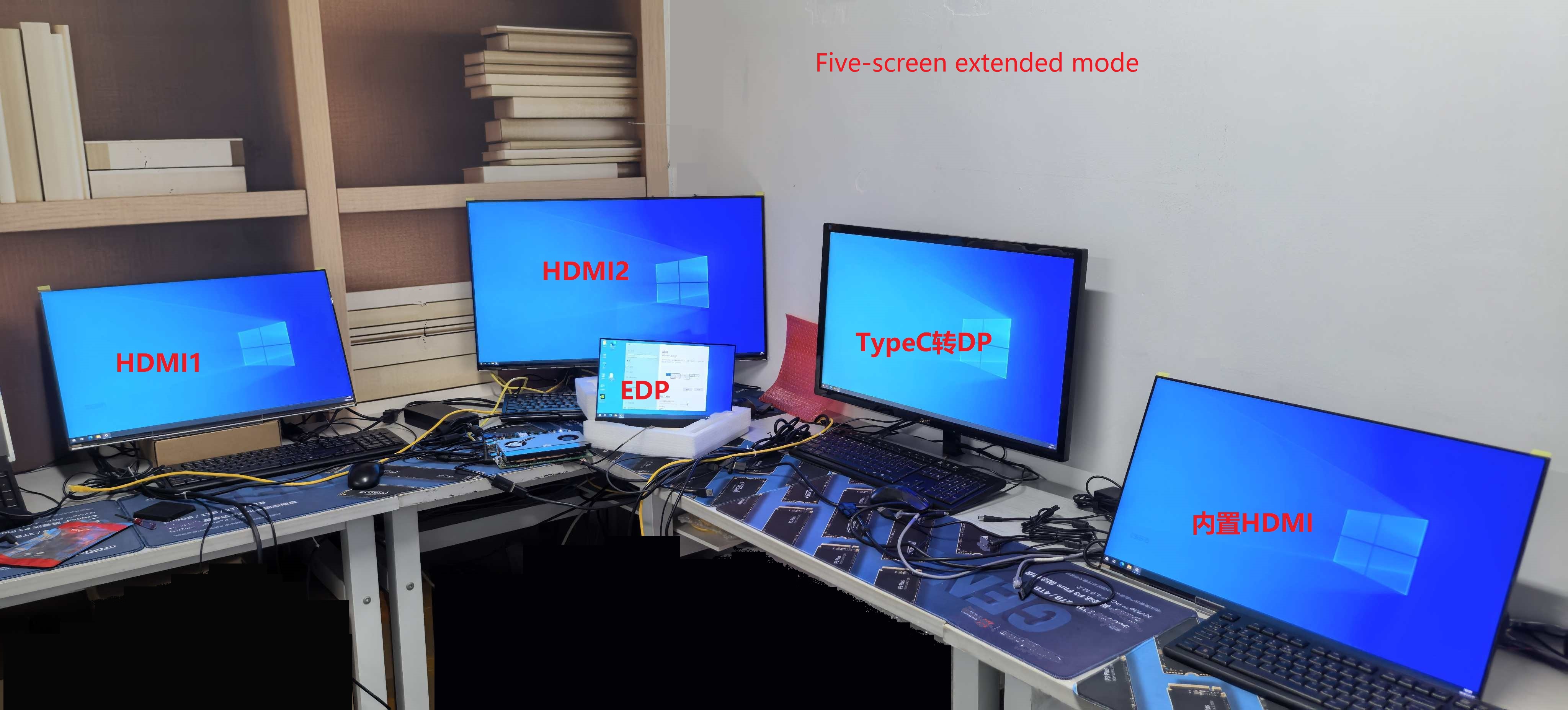 GREATZC's industrial motherboard with integrated graphics features five independent display output channels. The I/O ports include two HDMI 2.0 ports, one Type-C port that can directly output one DisplayPort (DP) port, and an EDP and HDMI output port on the bottom. These five ports can support five displays simultaneously. The integrated Intel Iris Xe Graphics on the CPU works in conjunction with the NVIDIA discrete graphics card, supporting simultaneous display of five displays (duplicate mode) or separate display of five displays (extension mode). It is widely used in ruggedized laptops, portable computers, drone flight control stations, video editing, security monitoring, machine vision, medical equipment, recording and broadcasting systems, command and control systems, and other applications.